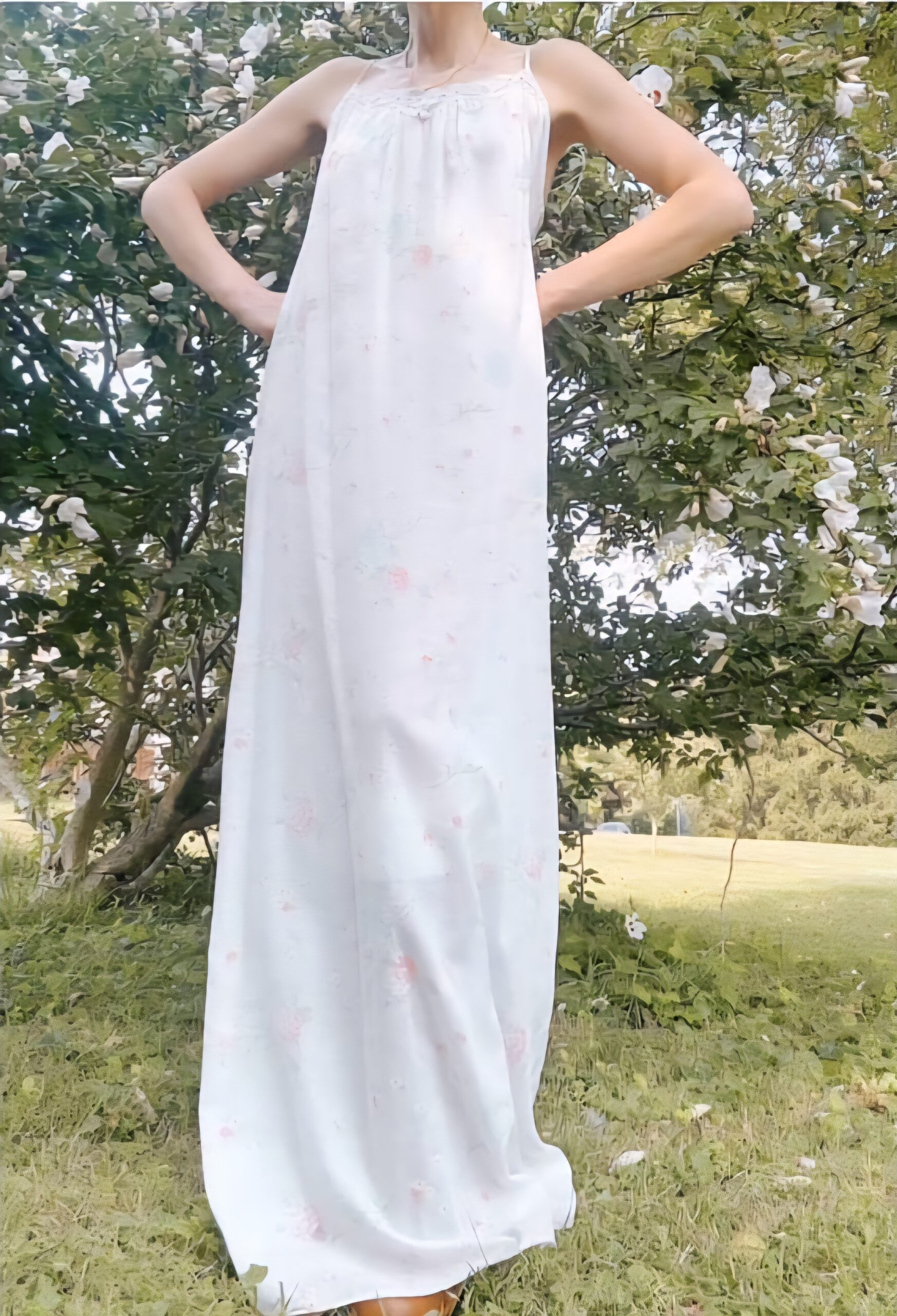 70s floral cotton & lace slip dress