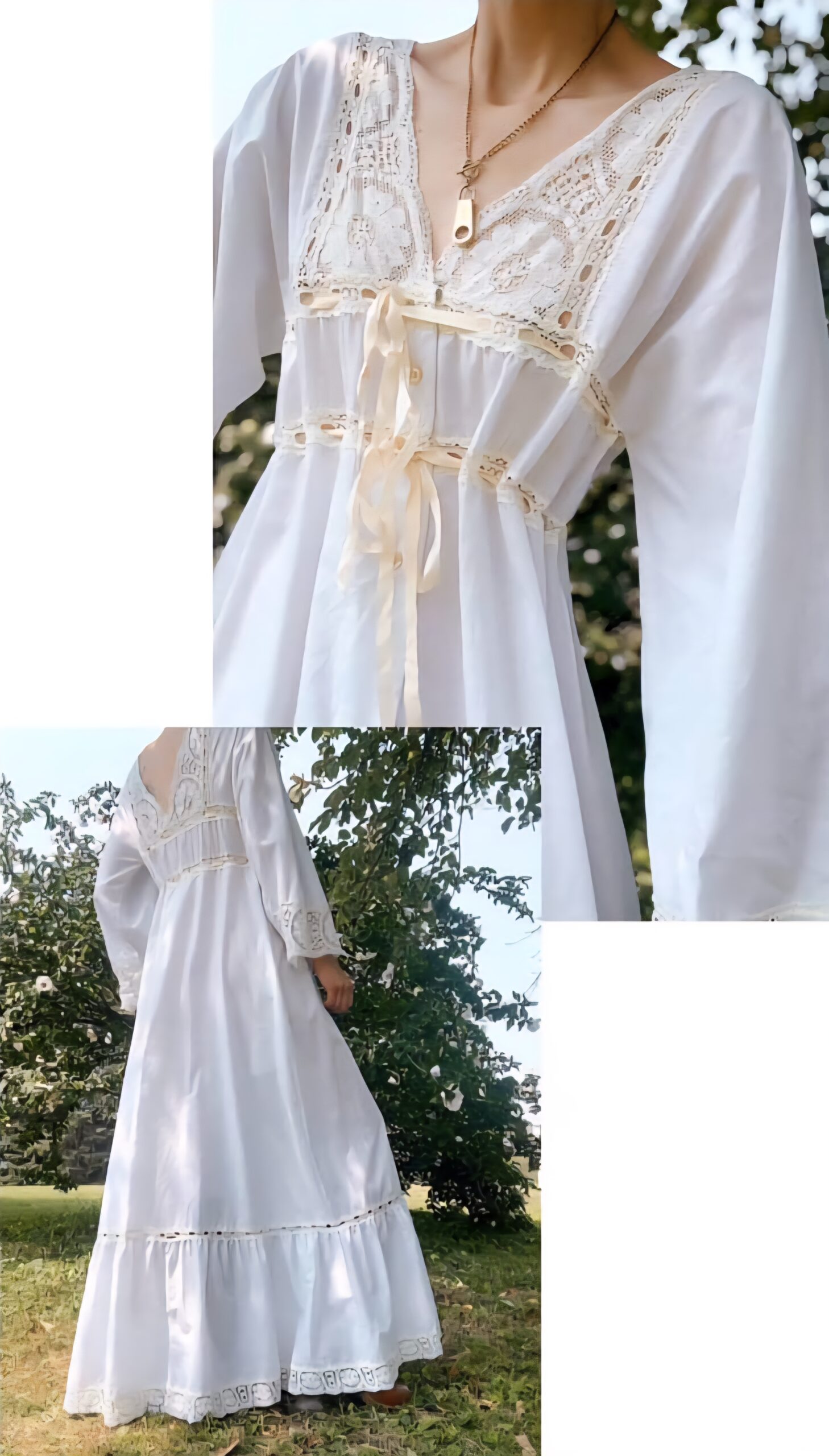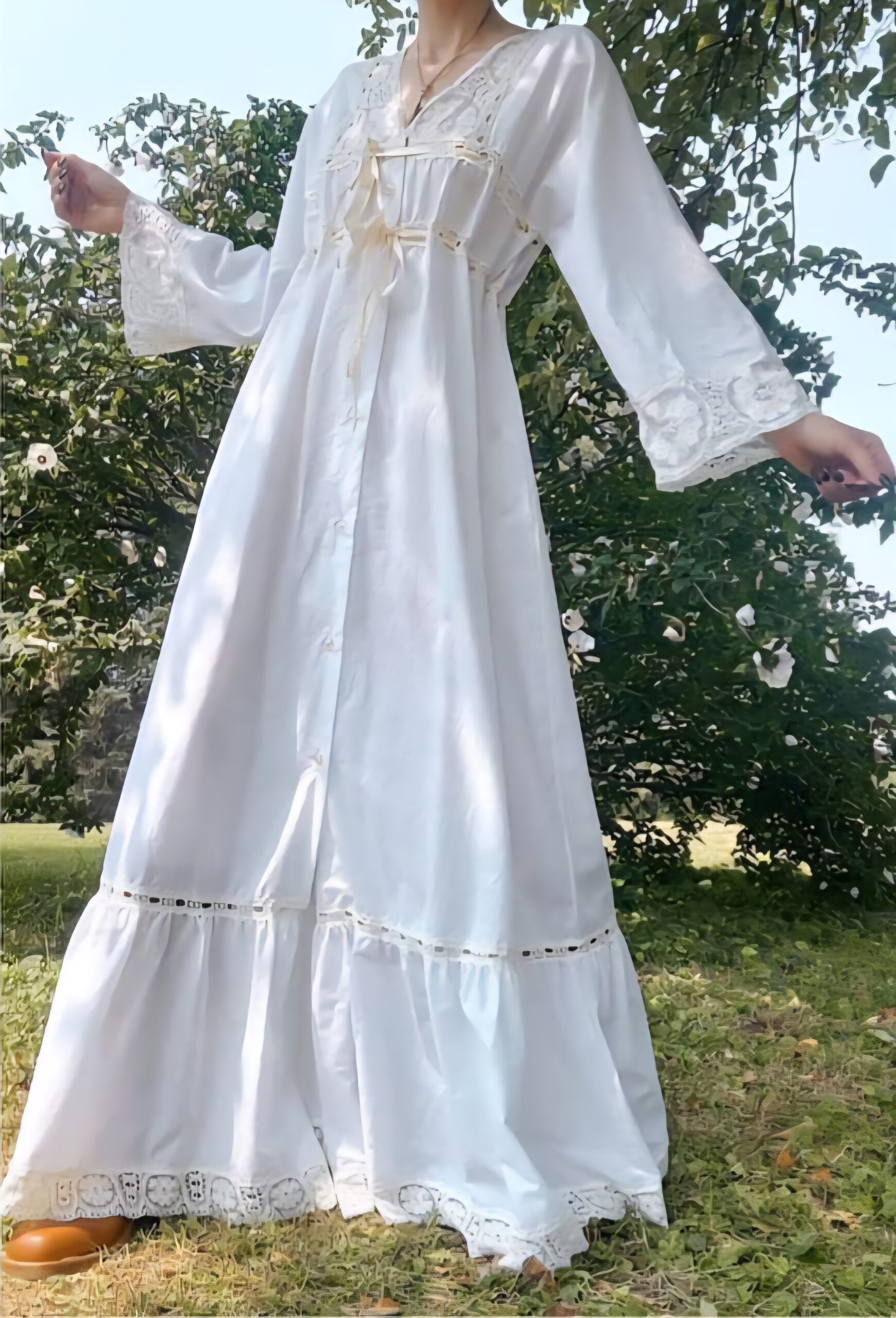 70s white cotton lace tiered dress