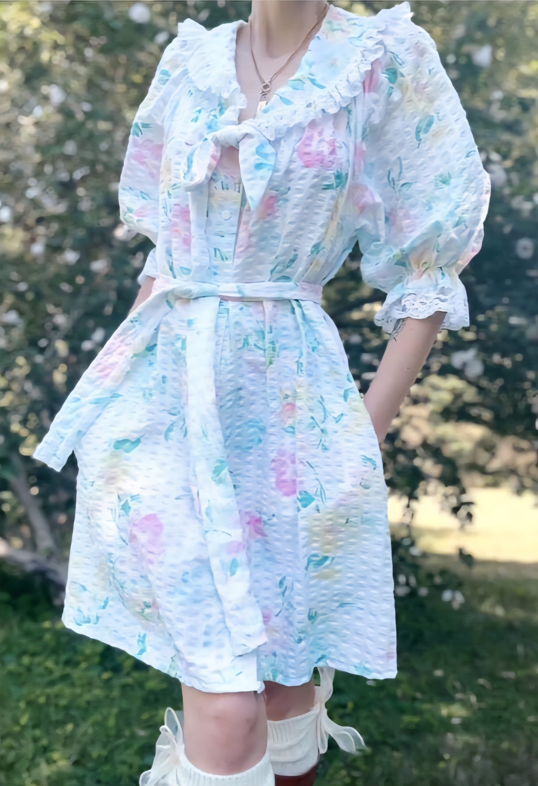 cotton seersucker flora mini dress